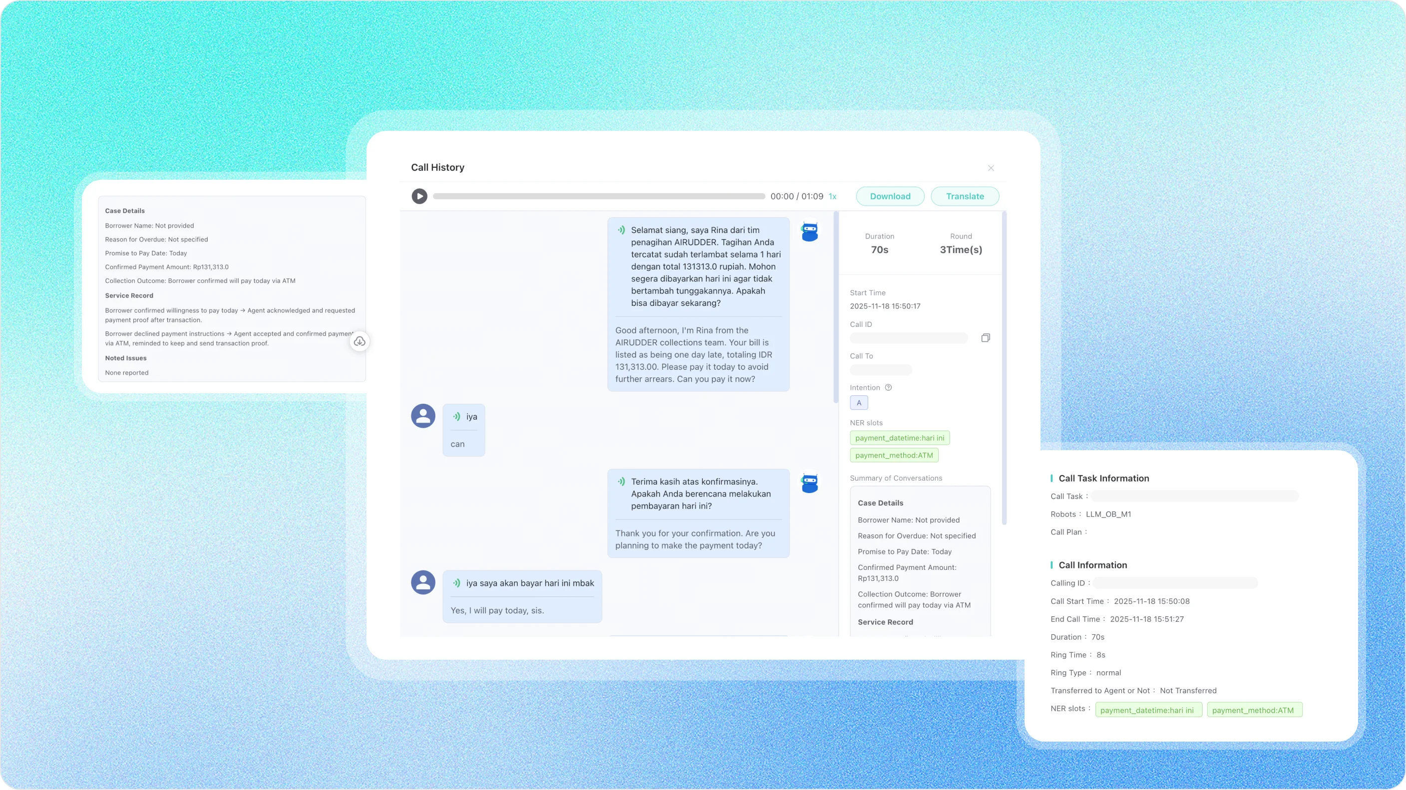 Centralize and automate your entire KYC and information-checking operation with omnichannel workflows, real-time agent assist, intelligent routing, and seamless bot-to-human escalation. AI Rudder’s contact center solution accelerates verification cycles, ensures compliance, reduces manual workload, and delivers consistent, secure KYC experiences across every customer touchpoint.