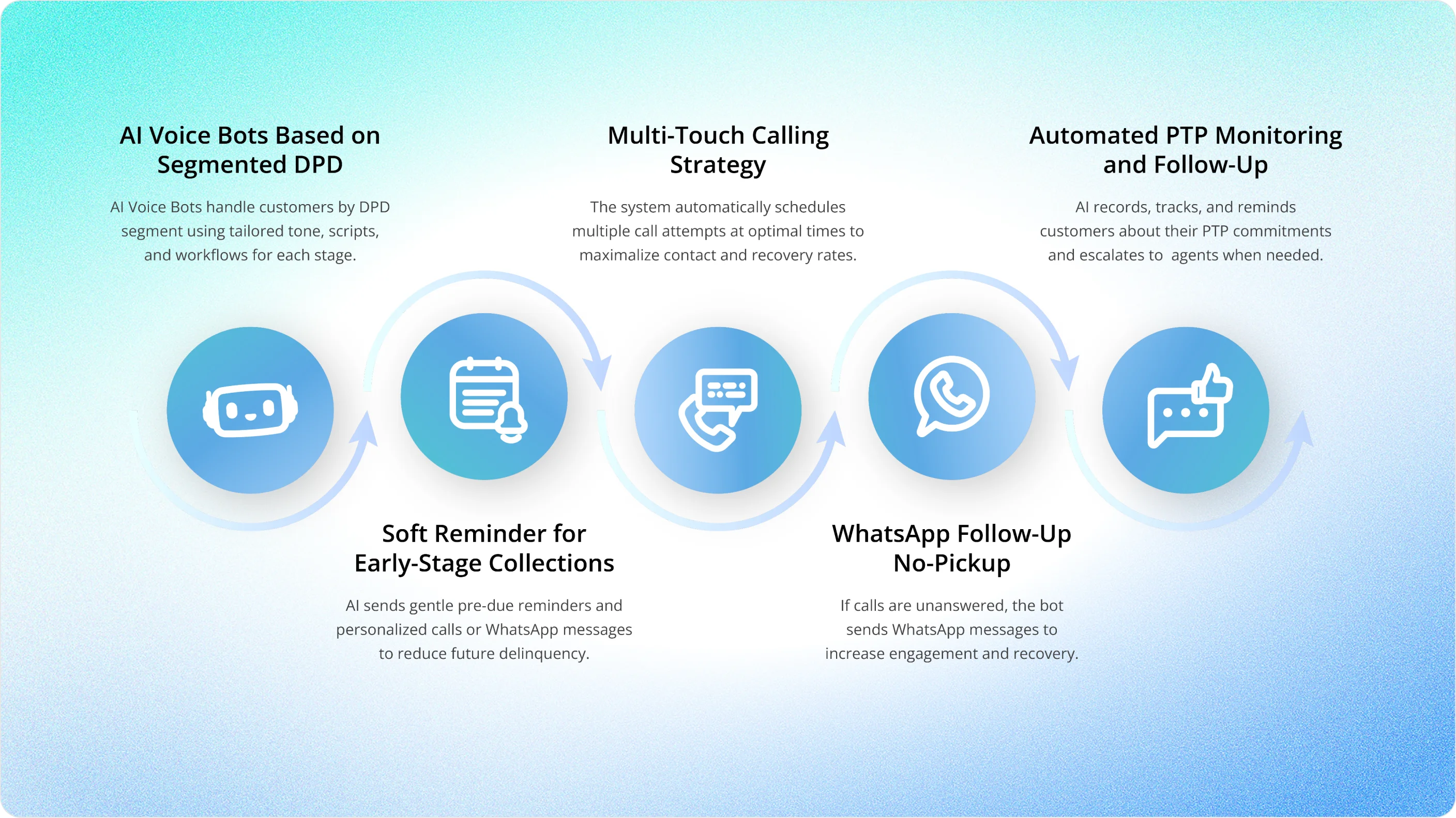 Engage customers instantly across WhatsApp, web, and mobile apps to collect required verification data and guide them through complete KYC flows without human intervention. The chatbot validates information, flags inconsistencies in real time, and ensures secure, compliant, and frictionless digital onboarding.